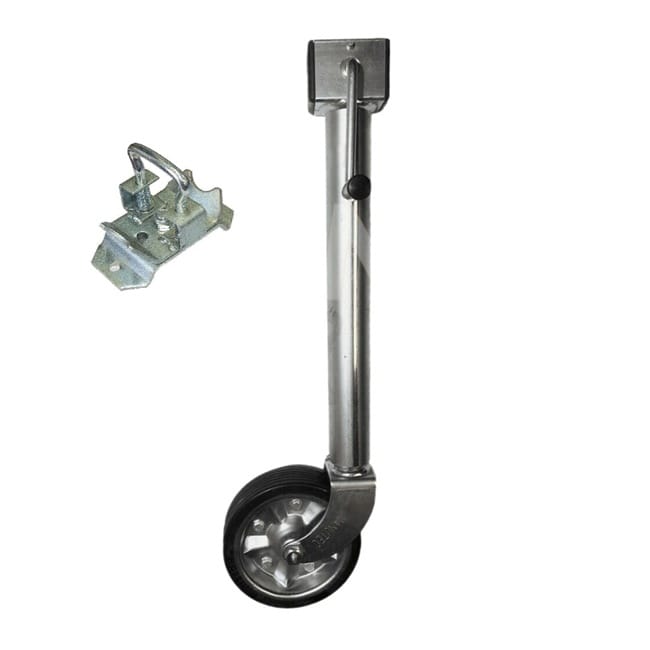 This jockey wheel includes a robust bracket, ensuring secure attachment and stability during use.
