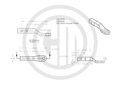 However, a welder has used an oxy torch to enlarge the hole size to 32mm, allowing it to fit a 4.5t tow ball.