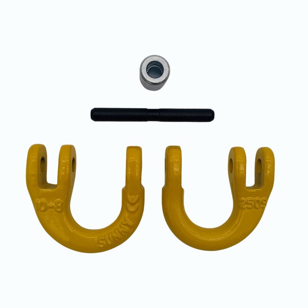 - Connects chains to trailers or to tow bars.